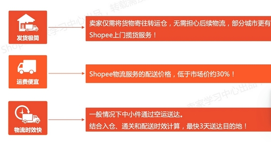 物流對于跨境電商的重要性毋庸置疑,Shopee物流服務SLS,低價高效,跨境發貨非常方便快捷。一旦出單,賣家只需根據物流要求打包好產品,從后臺打印面單,然后將包裹運送至轉運倉即可,轉運倉會立即將商品發往海外,保證商品運輸通暢。包裹到達轉運倉之后出口清關、最后一公里配送等所有物流環節,Shopee都會幫助賣家一站式解決。