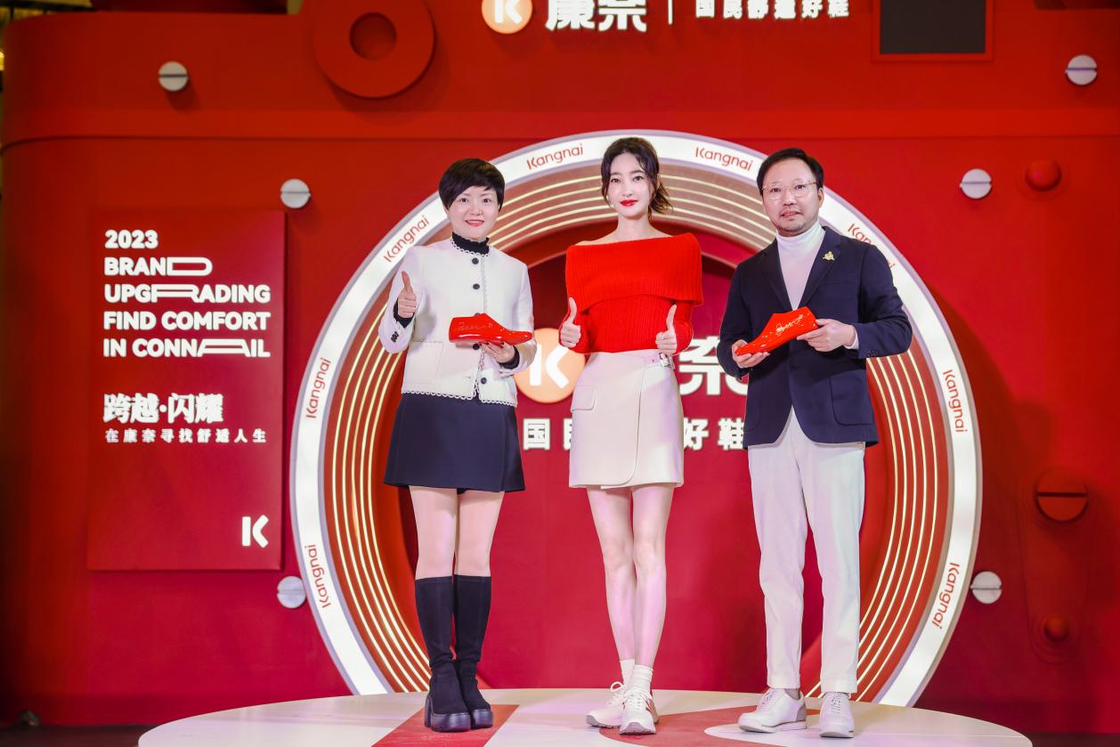 發布最大的亮點當屬國民女神王麗坤的亮相了。在“實力派演員”“素顏女神”等標簽加持下,她的光芒更加閃耀。此次她以康奈舒適體驗官的身份空降活動現場,從“明星”視角,為我們詮釋了康奈品牌煥新迸發的全新活力。她穿著康奈品牌新形象首個產品“彈彈鞋”出場,將現場氛圍推向了高潮。