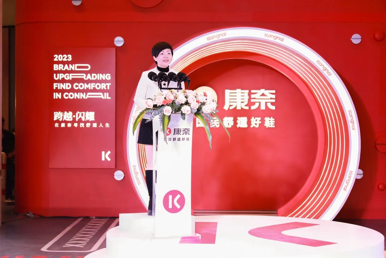 康奈集團總裁鄭萊莉在新形象發布環節全方位揭曉了此次煥新的精彩內容。她表示,全新的品牌標識,以康奈集團“美好生活,舒適致尚”的企業核心價值觀為出發點,更直觀展示康奈的創新精神,以及對行業的熱愛。
