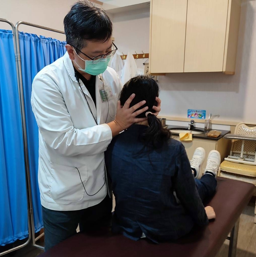 圖說二:醫師正以耳石復位術治療患者。