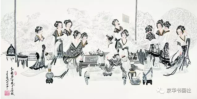 梁永和先生畫作以工筆見長,擅繪花鳥,獨創大寫意人物畫的特殊技法,形成了自己獨到的風格,在國內外獨樹一幟。著色方面:顏色鮮艷活潑,大膽創新顏料選材,從天然礦石到各色蔬果均能入畫,另外不拘泥技法,有時用沒骨,有時大筆暈染,有時甚至就幾乎像畫水彩一樣;人物形象方面:一改傳統畫品中仕女畫只有形態而沒有表情的窘態,每一位仕女皆是活生生的人,富有神態和活力。